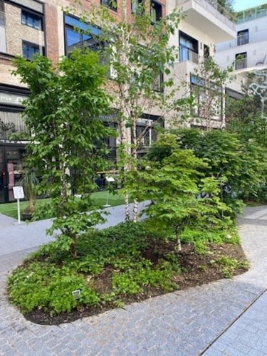 Ces jardins d’ombre composés de graminées et de vivaces en mélange seront ponctués de petits arbres en cépées (plusieurs troncs partant de la base du sol) à fleurs et au feuillage fin, afin d’offrir des ombres fines et légères.